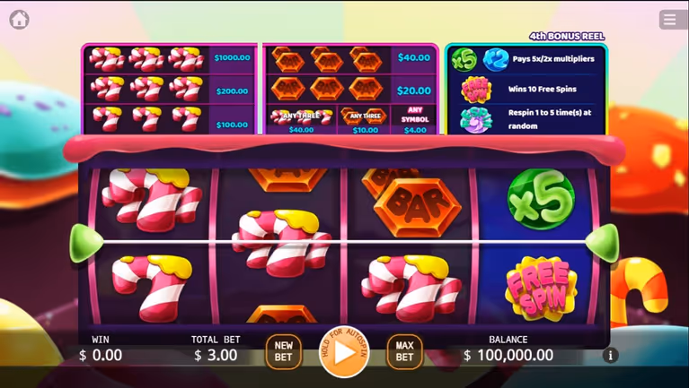 The interface is user-friendly, allowing even newcomers to quickly understand how to adjust their bets and spin the reels. The paytable is clearly accessible, showing exactly how much each sweet combination will add to your balance when matched across the reels.